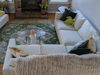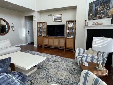 My client had a beautiful collection of wall art and pottery but was unhappy with the layout and furnishings. Together, we selected comfortable furniture that complemented her art and created a space she loves...and her dog approved of everything.